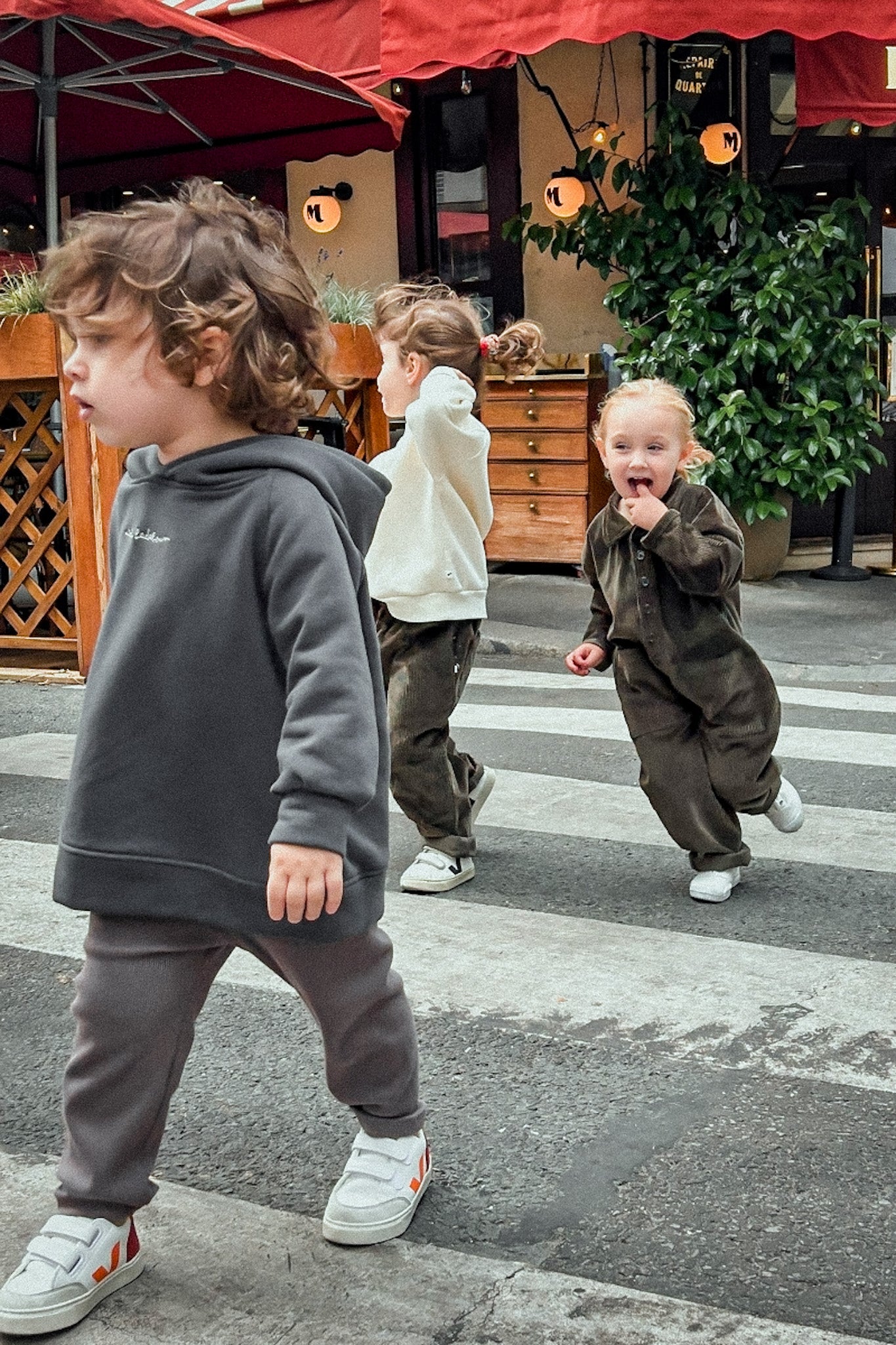 Garance (3 ans) et Romeo (3 ans) portent du 4A. Pour un look oversize et encore plus confortable, vous pouvez opter pour une taille au-dessus. Les dimensions détaillées sont disponibles dans la section "Guide des tailles".